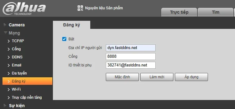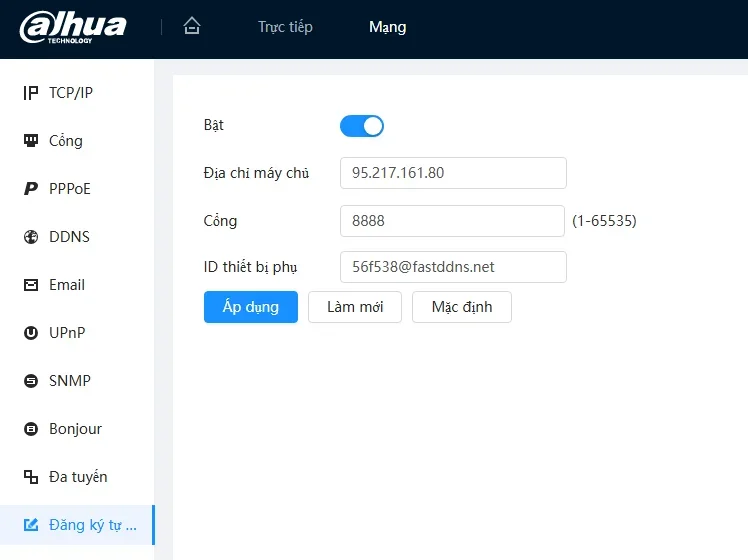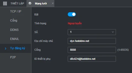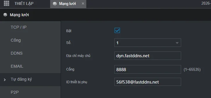 • Device ID: FastDDNS의 장치 ID를 붙여넣기(예: [email protected] )